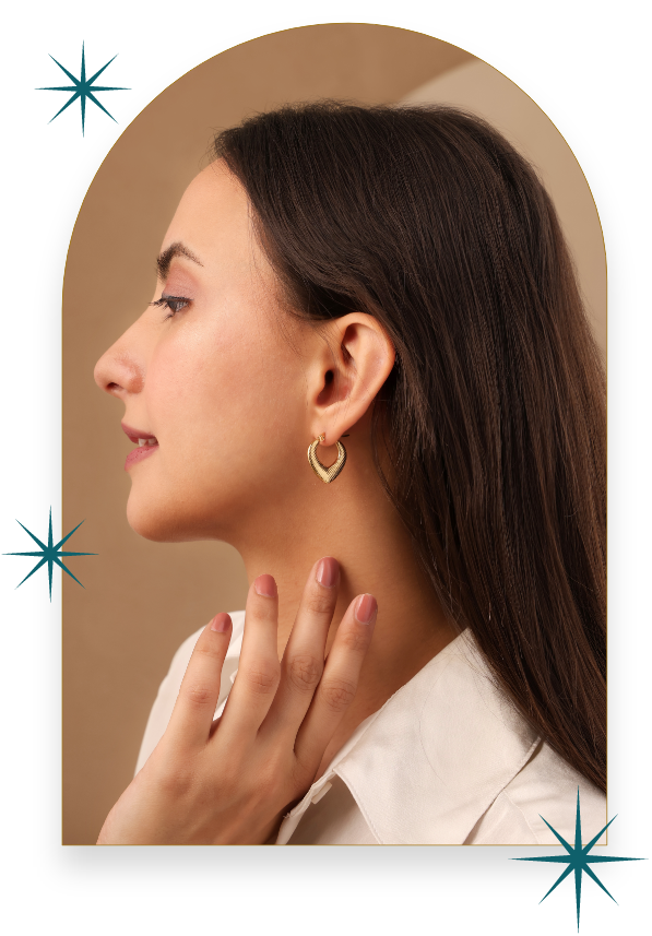 Our 18K demi-fine gold plating offers long-lasting shine and premium quality. Each piece blends durability with elegance, giving you everyday jewellery that looks luxurious, feels comfortable, and stays beautiful over time.