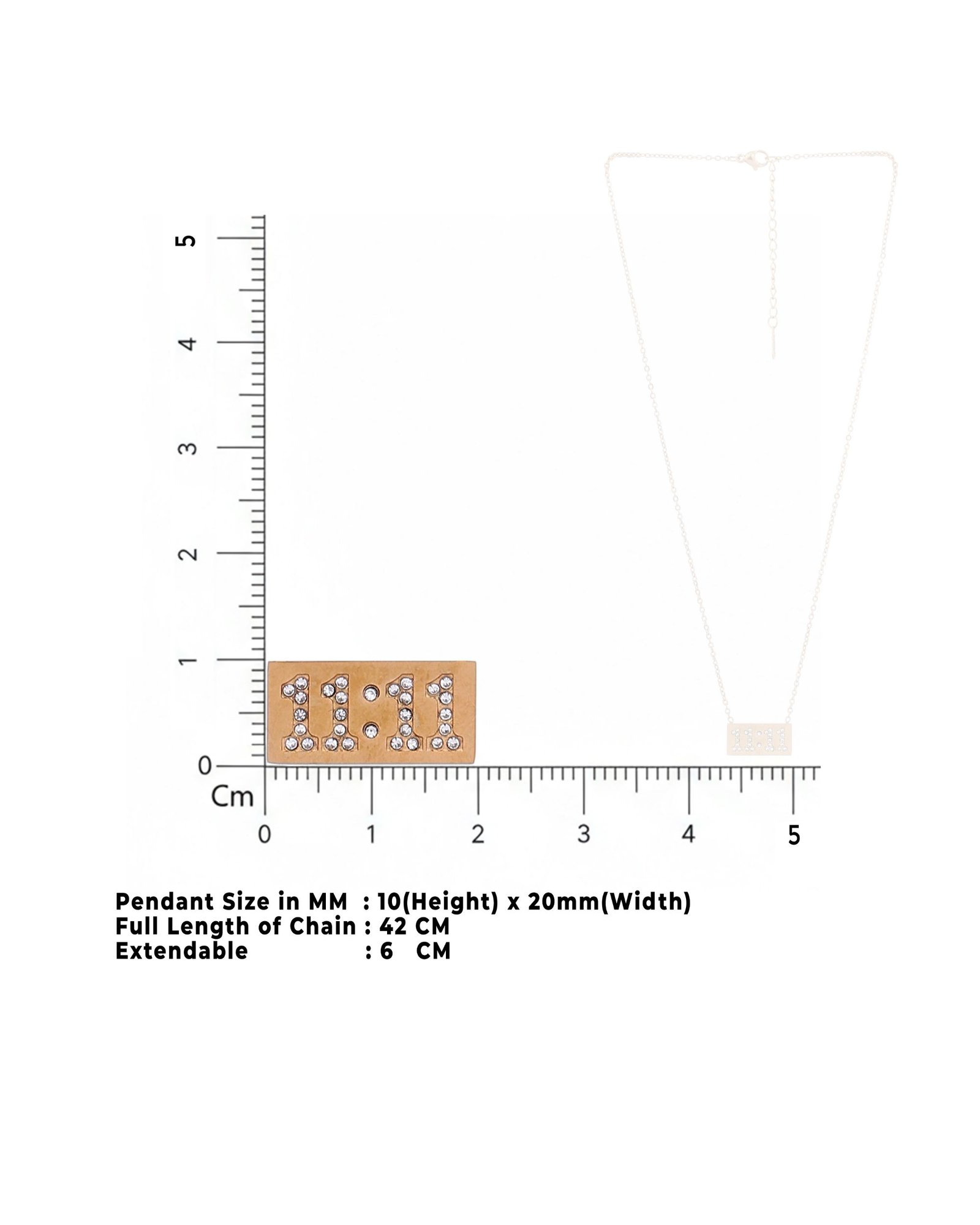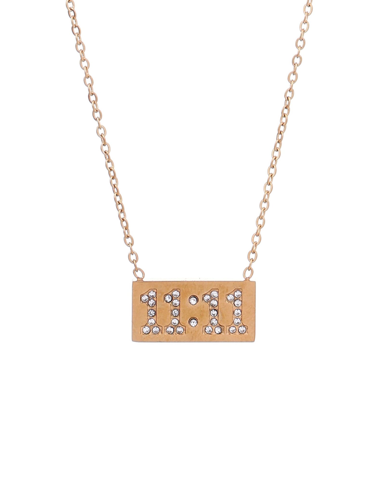 18K Gold-Plated Stainless Steel Necklace crafted from anti-tarnish steel for lasting shine and durability. Designed with an “11:11” motif embedded with radiant cubic zirconia stones for a meaningful, elegant touch. Sweat and water resistant with a hypoallergenic finish, making it suitable for everyday wear. Features an adjustable 42 cm chain with a 6 cm extender for comfortable, versatile styling. Weighing approximately 5 g, it offers a lightweight, well-balanced feel.