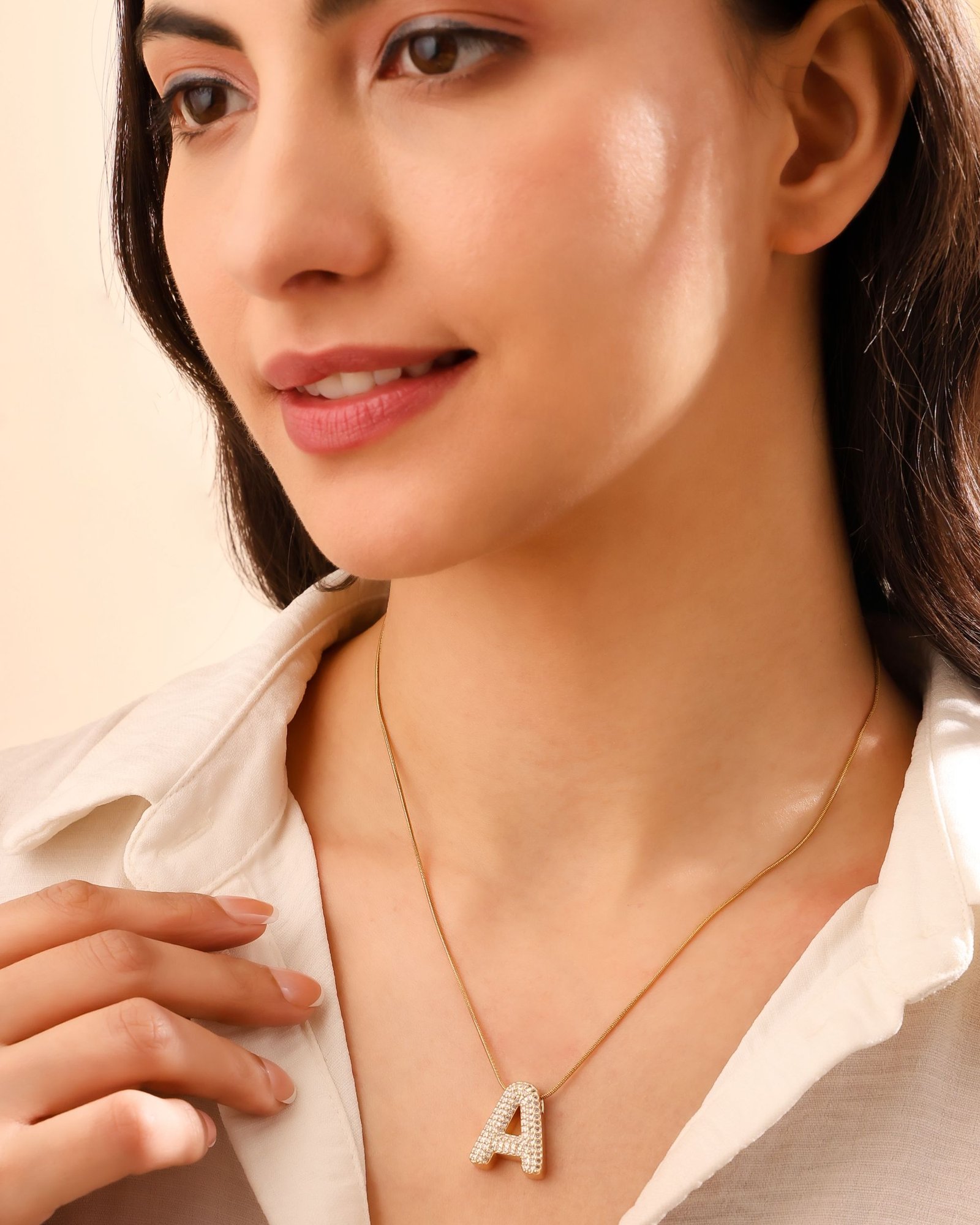 - Design: Letter A Pendant with Slim Chain