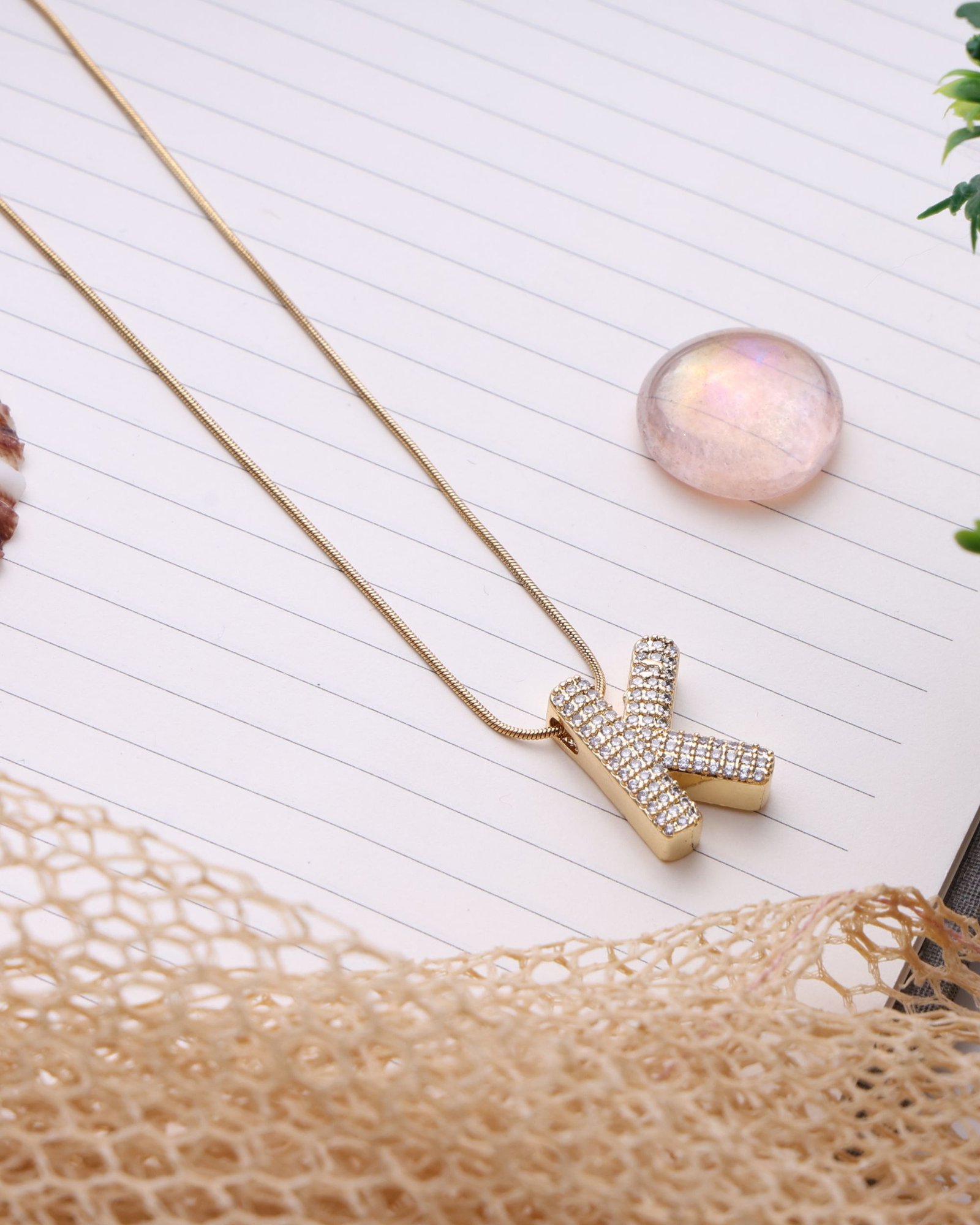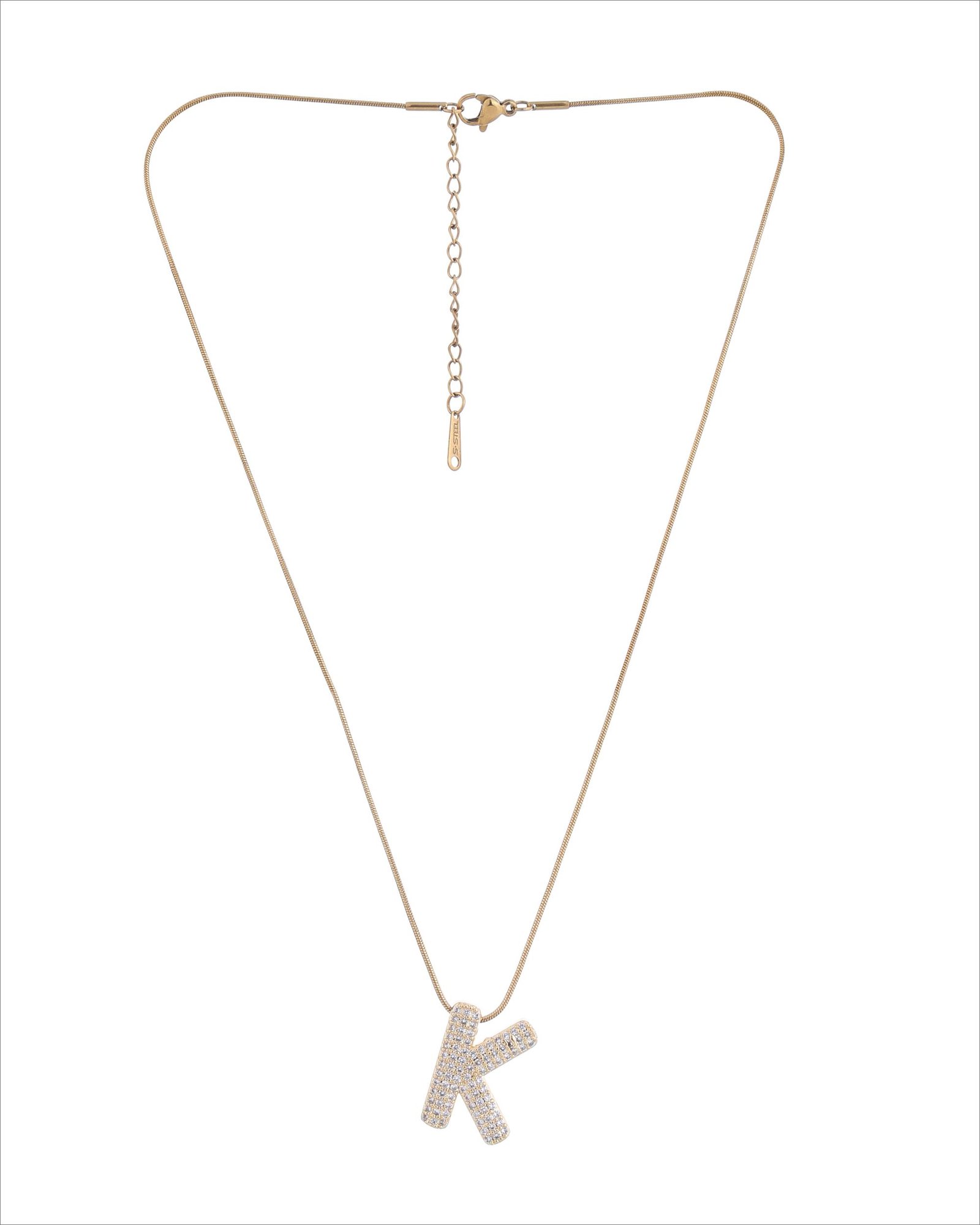- Design: Letter K Pendant with Slim Chain
