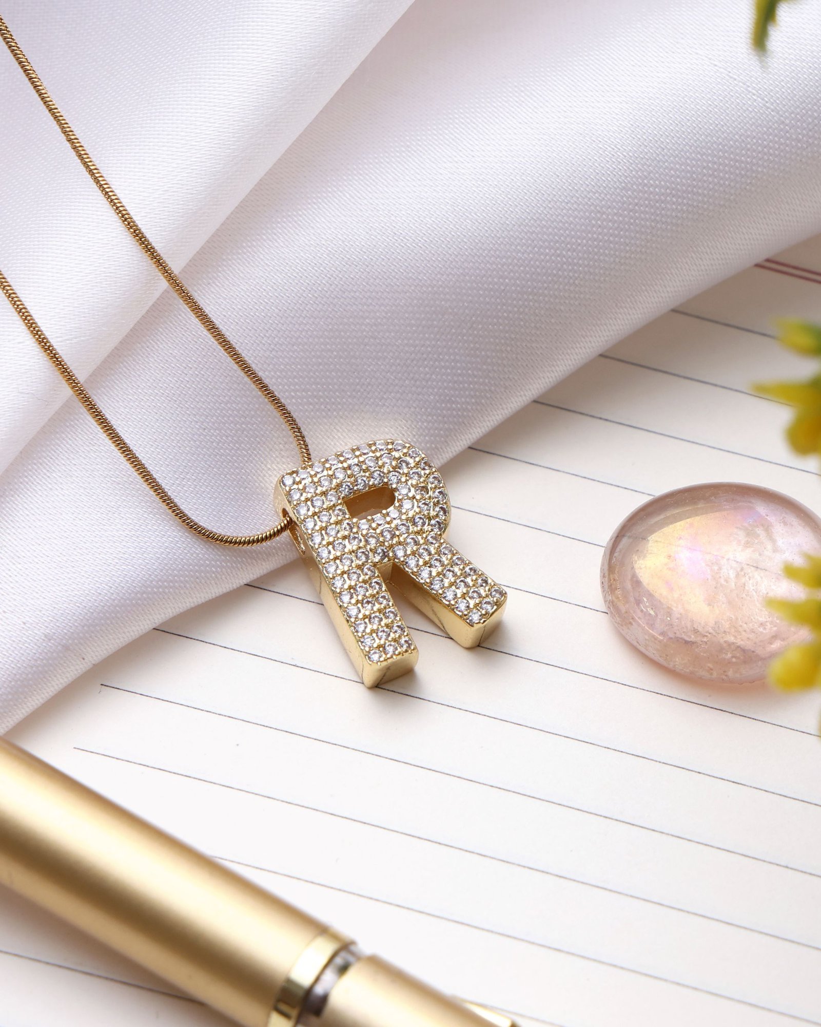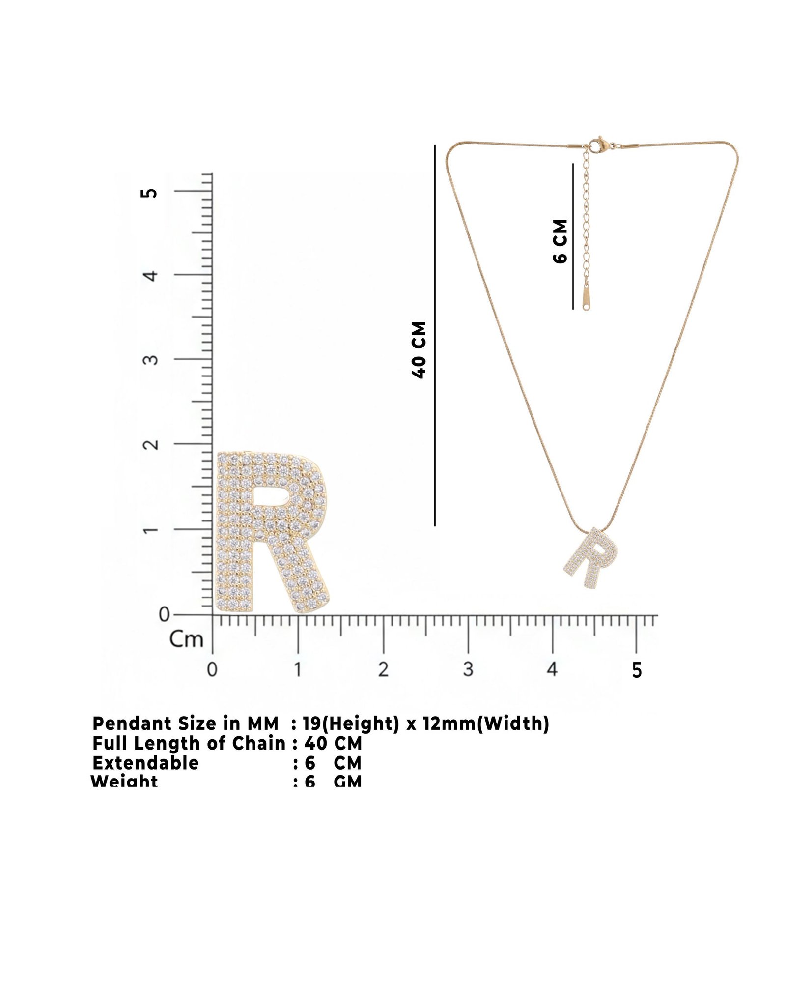 - Design: Letter R Pendant with Slim Chain