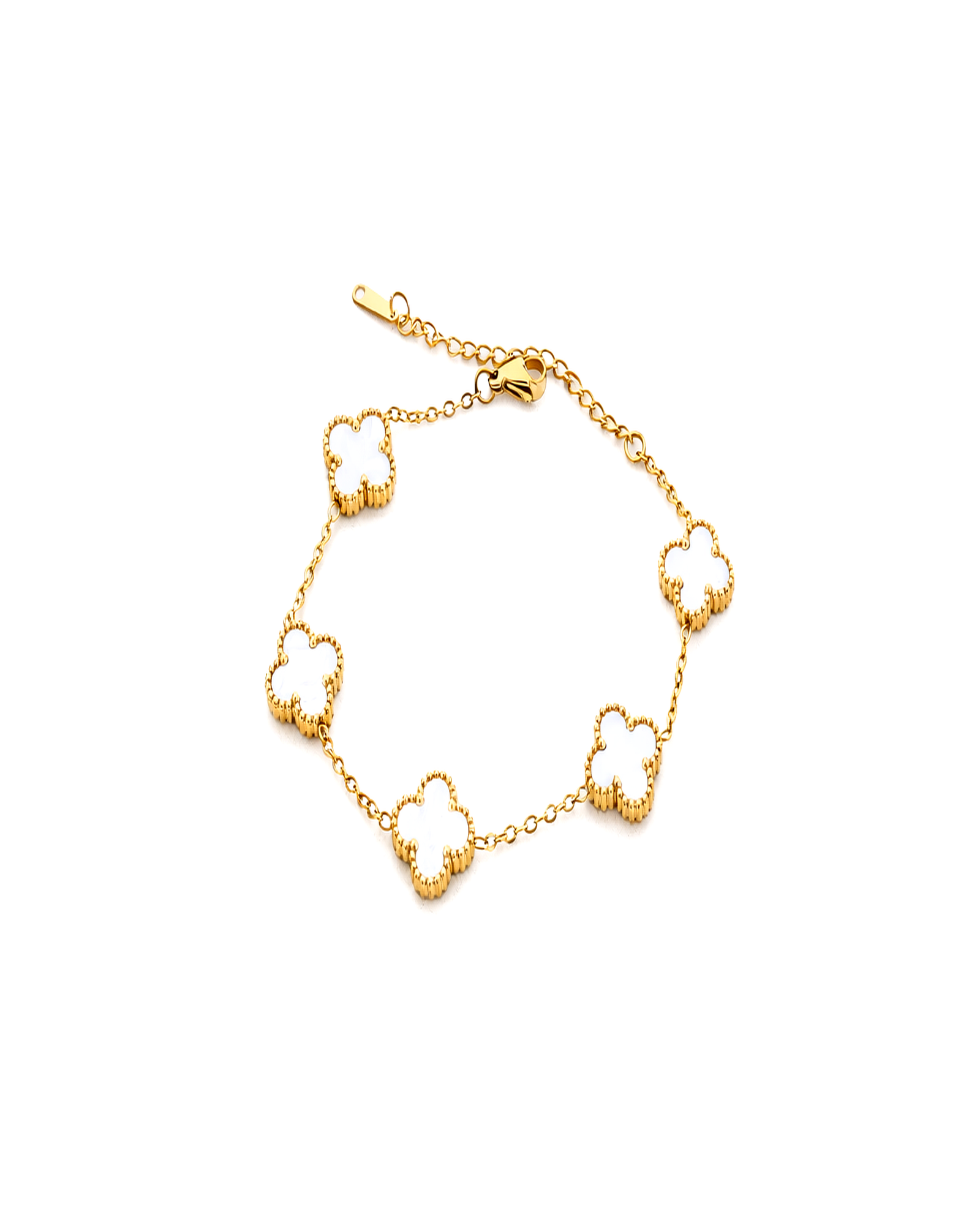- Design Feature: Five clover charms with premium mother-of-pearl finish
