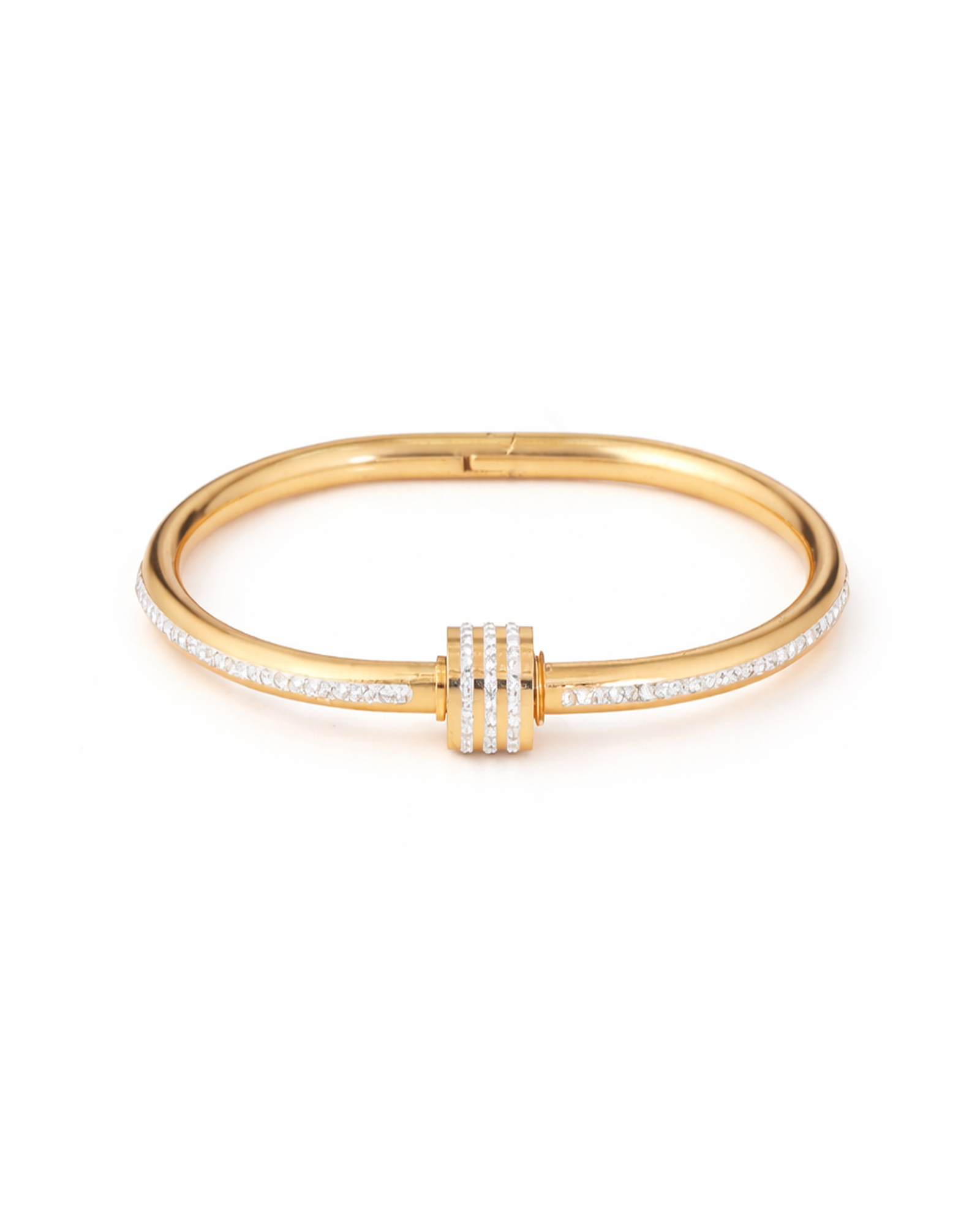 Premium 18K Gold-Plated Stainless Steel Bracelet crafted from high-quality stainless steel for lasting durability and shine. Designed with a sleek minimal style and sparkling white stone accents, it offers a refined everyday look. Built for a comfortable fit on wrists up to 17 cm, it features a secure adjustable closure for a flexible and reliable fit. Anti-tarnish, water- and sweat-resistant, and hypoallergenic, this lightweight bracelet ensures smooth, irritation-free comfort for effortless daily wear.