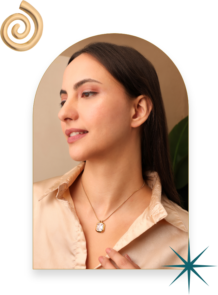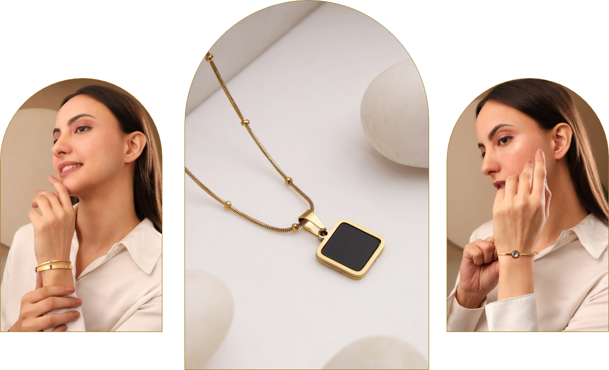 We use premium materials like stainless steel, durable 18K gold plating, and high-quality stones to ensure long-lasting shine and skin-friendly comfort. Each piece is crafted to resist fading